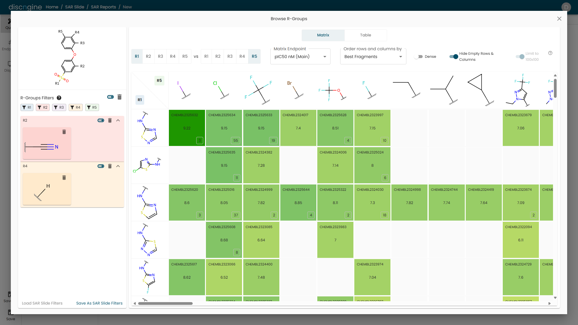 Efficient Structure-Activity Relationship (SAR) Reporting and Exploration in Drug Discovery: Discover Discngine Ideation SAR Slides